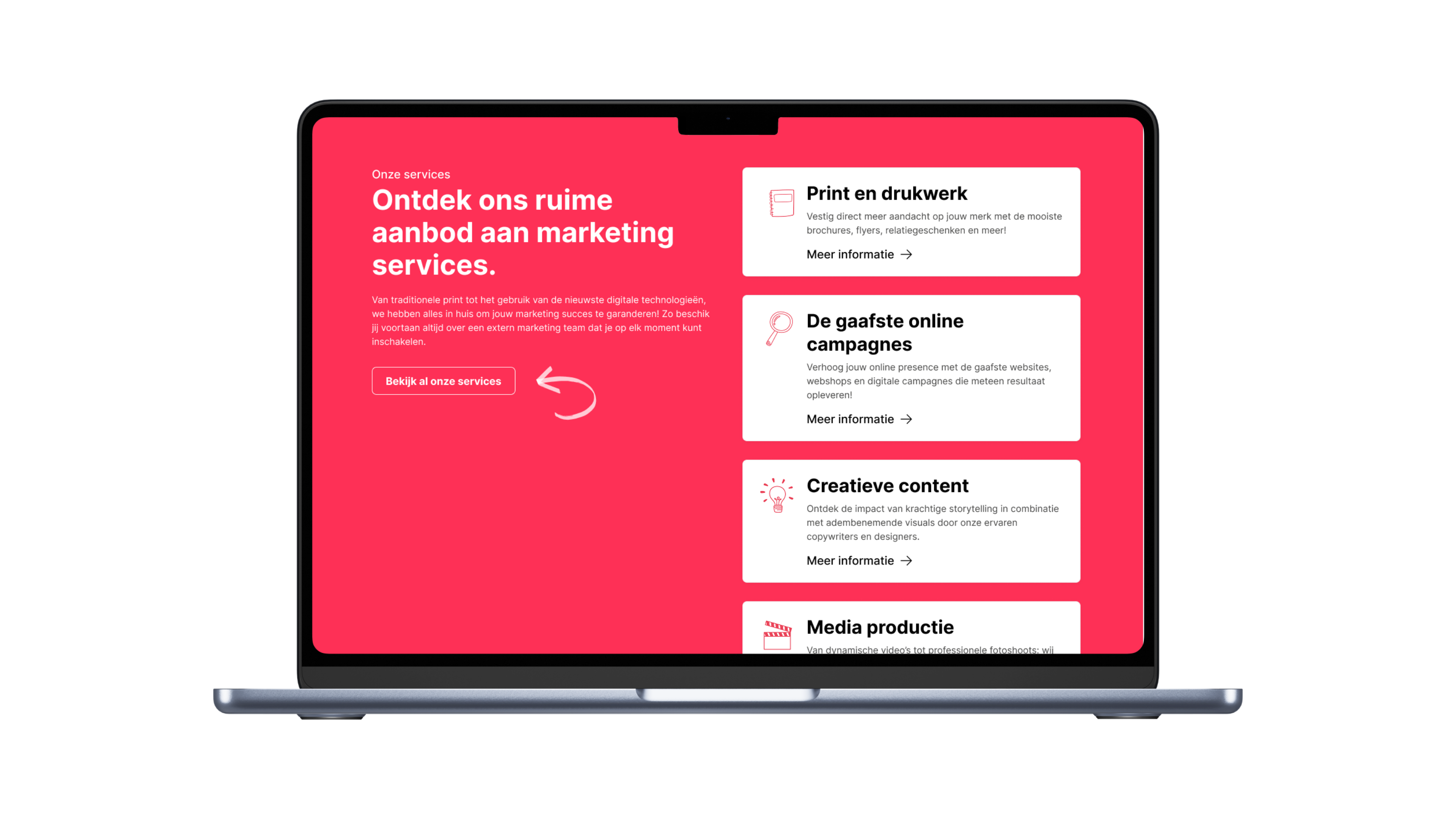 Als creatief bureau moeten we natuurlijk zelf het goede voorbeeld geven. Onze oude website was te algemeen, minder overzichtelijk en liet niet meer zien hoe breed ons aanbod inmiddels was geworden. Het werd tijd voor een digitale upgrade die onze verschillende expertises beter naar voren bracht.